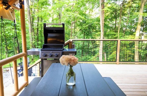 Escape to this one-of-a-kind luxury glamping tent just minutes from Berlin, Ohio's largest Amish community. Nestled on 12 private wooded acres with hiking trails, chicken coop, EV Charger, and right across from Black Diamond Golf Course. Your peaceful getaway awaits!