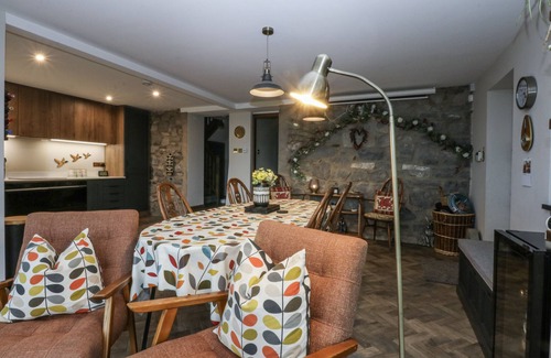 Amenities: Ground source heating and partial underfloor heating. Double oven, electric hob, fridge/freezer, tumble dryer dishwasher. TV, WiFi. Fuel, power, and starter pack for woodburning stove inc. in rent. Bed linen and towels inc. in rent. Highchair and travel cot available on request. Off-road parking for 1 car, and roadside parking available on a first-come, first-served basis. Enclosed wrap-around garden with lawn, patio, decking and furniture. Two well-behaved pets welcome. Sorry, no smoking. Shop 1.6 miles, pub 0.2 miles. Note: There are sloping ceilings and low door frames in this property, please mind your head