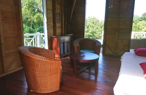 Located in lush greenery, at the foot of the tropical forest, 5 km from Deshaies and 500 meters from Grande Anse beach, one of the most beautiful beaches in Guadeloupe, this Creole kaz-type wooden house with its panoramic bedroom open to trade winds, its large terrace with integrated sea view swimming pool will allow you to spend a pleasant stay.