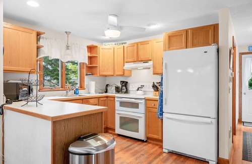 Our home is at the end of a private road, next to protected woods of oak, pine, and sassafras. Sitting on the deck with your breakfast, overlooking the woods, is a real treat. At night you may hear owls, foxes and maybe even a coyote! The surrounding neighborhood is just as special - a three block walk puts you right on Red River Beach - a wonderful spot, cherished by locals and visitors alike! And our home itself is set up for a great vacation - plenty of interior space to settle into and additional outdoor amenities to enjoy. We hope you enjoy your time at Woods Edge and that you feel so at home that you return again next year!