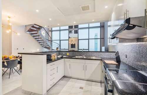 It is fully equipped with stainless-steel cooking appliances that make it suitable for preparing any meal, whether a simple breakfast, quick snack or a three-course gourmet dinner. Spacious quartz countertops and a central kitchen island provide plenty of room to work your MasterChef magic.