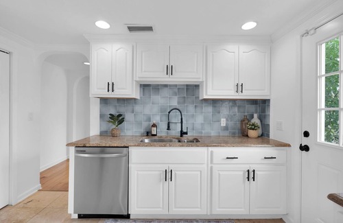 ‘The Charleston’ is thoughtfully set up for large families, extended families, or groups of friends to hang out together and enjoy an open concept feel living area with wet bar/coffee bar complete with mini fridge and bar sink. We also have a spacious, fully stocked kitchen perfect for cooking together with an attached dining nook. You can choose to enjoy your meals indoors or at the outdoor dining table in the large private backyard oasis. No details were overlooked in designing this space for your full enjoyment.