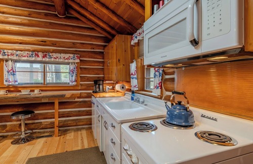 Just five blocks from the west entrance of Yellowstone National Park, enjoy your Montana vacation in a cozy classic log cabin restored in 2013. YCC Cabin has two bedrooms with double beds that share a full bathroom with enclosed shower and toilet plus separate granite vanity and log counter. The second full bathroom is equipped with toilet, sink, and tub with vintage style hand held shower. The living room has a custom built full size bed. A ladder from the great room accesses the semi-private loft where two twin beds are nestled. A combination of vintage and modern appliances provide convenience with mid 20th century charm. The kitchen is equipped with a range, oven, sink, refrigerator, dishwasher and is furnished with cooking and dining ware. The dining table seats 6, and a rustic log slab bar provides 2 bar stools for additional people or is a great place to use as a workspace. Our 1,440 square foot log cabin also has an enclosed foyer that provides a wax bench and storage for some of your vacation toys.