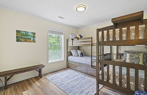 On the second floor you will find two bedrooms with king-size beds, one bedroom with two sets of twin bunks plus a full-size bed, and two full baths. (Please note that four of the individual beds are part of twin bunk beds and may not be comfortable for all adults.)