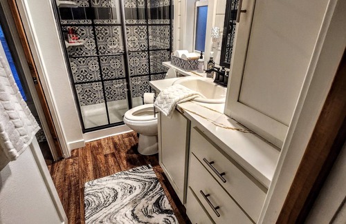 Tiny house cottage that can sleep up to 3 couples. Front & back covered porches to watch the sunrise and sunsets. Kitchen with island seating for 2, full range, full refrigerator and a farm sink. Family room area with couch to lounge on. Loft has 2 beds, low ceilings due to being tiny house but tall enough to sit on a loveseat. Extra storage provided for belongings. Watch the sunset and sunrise from your beds with mountain views. Front porch has high table with 4 chairs and 2 side cushioned chairs with ottomans for relaxing. Ceiling fan on deck ceiling for warmer days. Back deck has table and 2 chairs if wanted privacy. Full bathroom accessible from main living area or master bedroom. Shower has a rain shower head for a nice shower experience. Close to nature for those who come to play in the desert.